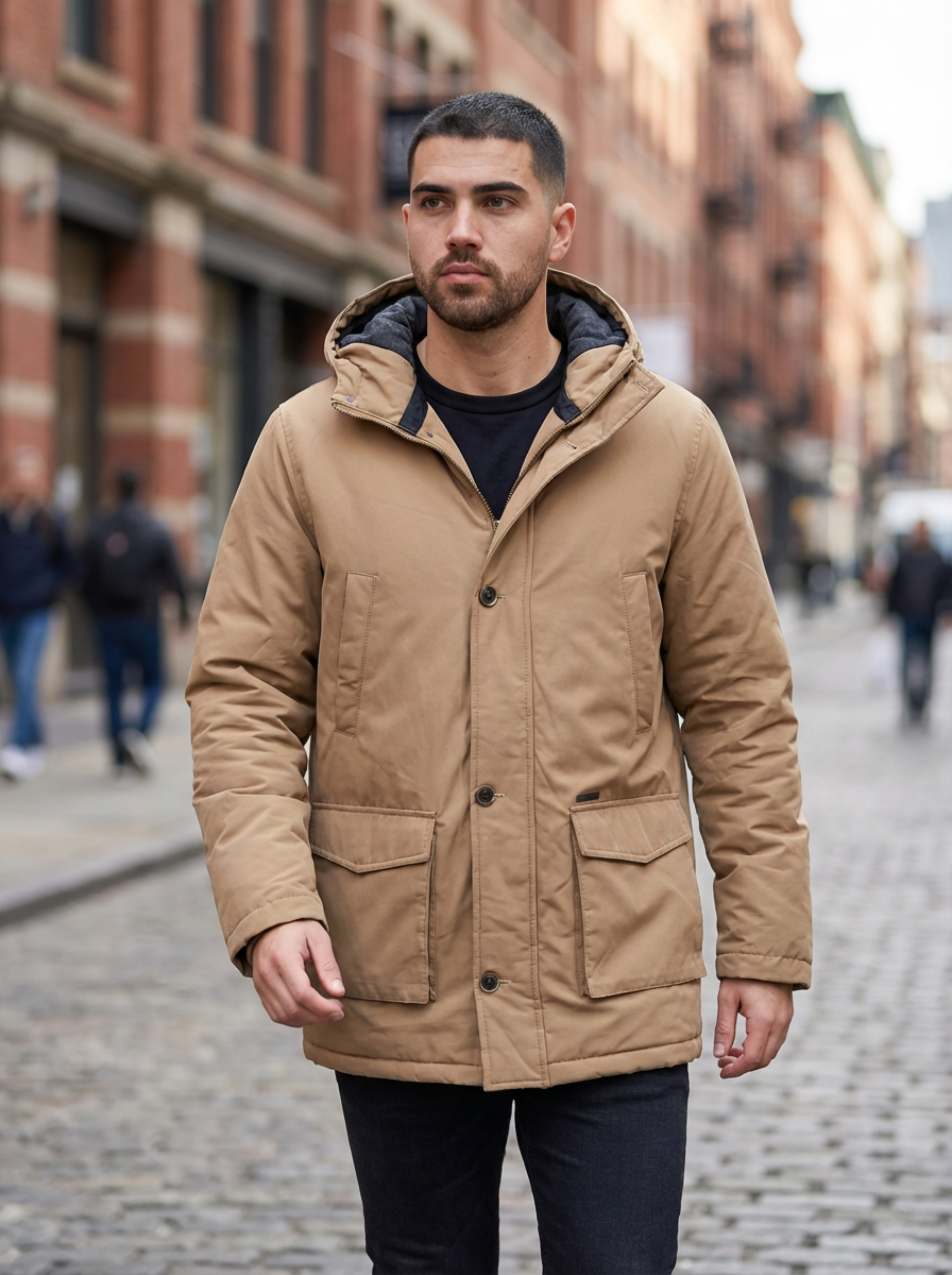 Ova zimska jakna pruža odličnu toplinu i udobnost u hladnim danima. Kroj je praktičan i moderan, sa kapuljačom i velikim džepovima koji daju funkcionalnost za svakodnevnu upotrebu. Idealna je za grad, posao i opuštene šetnje.