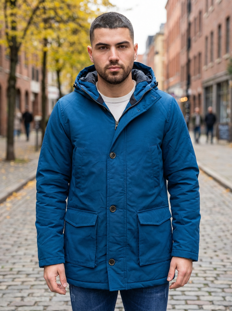 Ova zimska jakna pruža odličnu toplinu i udobnost u hladnim danima. Kroj je praktičan i moderan, sa kapuljačom i velikim džepovima koji daju funkcionalnost za svakodnevnu upotrebu. Idealna je za grad, posao i opuštene šetnje.