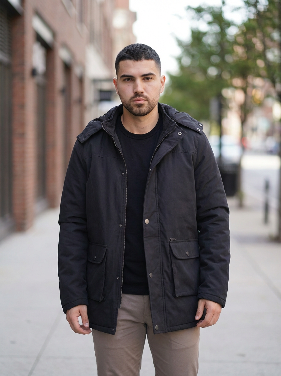 Ova zimska jakna je kreirana za muškarce koji žele pouzdan spoj udobnosti, praktičnosti i modernog izgleda tokom hladnih meseci. Materijal je čvrst, prijatan na dodir i pruža stabilnu zaštitu od vetra, dok unutrašnja postava obezbeđuje prijatnu toplinu tokom celog dana. Kroj je oblikovan tako da lepo prati liniju tela, bez gubitka udobnosti, pa jakna izgleda uredno i u ležernim i u urbanim kombinacijama.