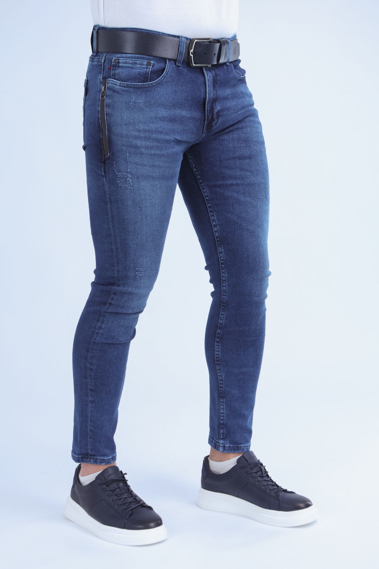 Poseban detalj na ovom modelu je rajfšlus na prednjem džepu, koji služi kao modni akcenat i daje pantalnama jedinstven, moderniji vizuelni pečat. Kroj je klasičnih pet džepova, uz standardni struk i preciznu izradu, pa je ovaj model idealan za one koji žele skinny kroj sa dodatnom dozom stila.