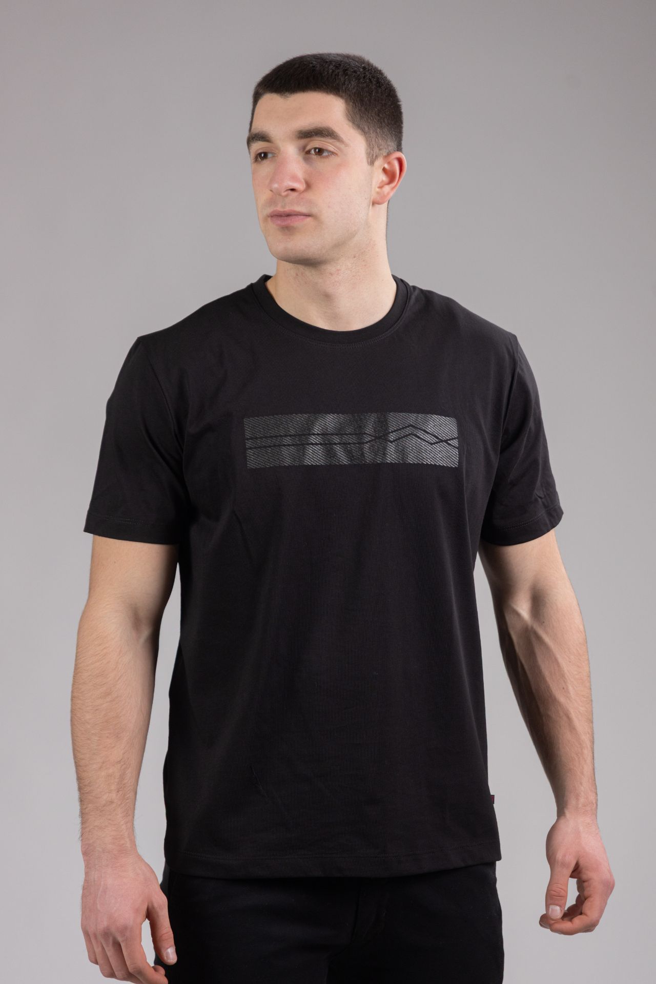 Klasična muška majica od 100% pamuka, ravnog i udobnog kroja. Minimalistički dizajn idealan za svaki dan. Model na fotografiji: 188 cm, 85 kg, nosi veličinu L.
